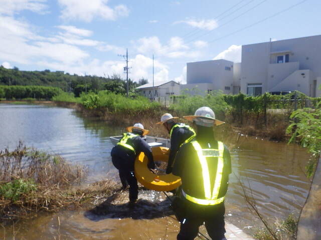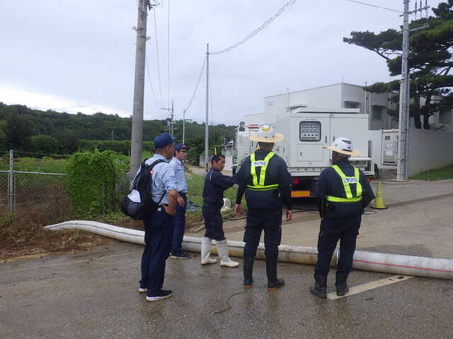 2025.10.09北大東村の冠水被害で排水作業に協力